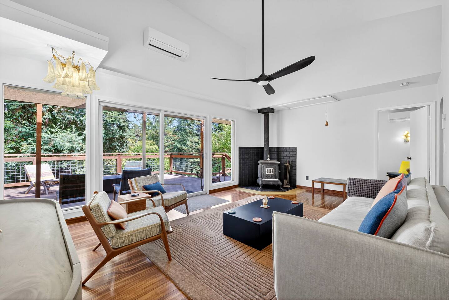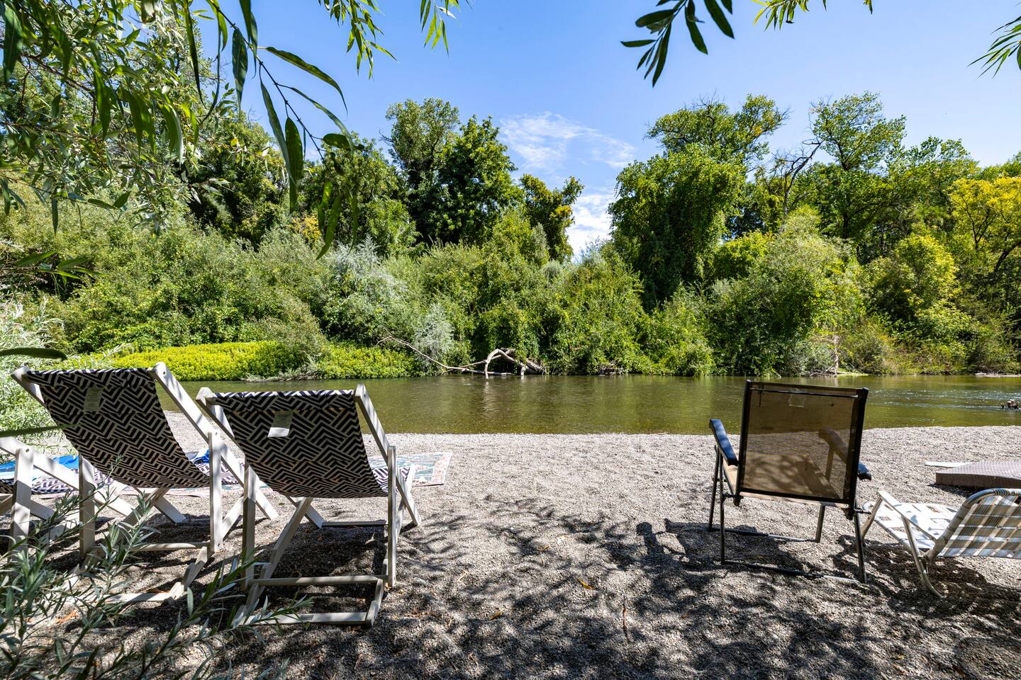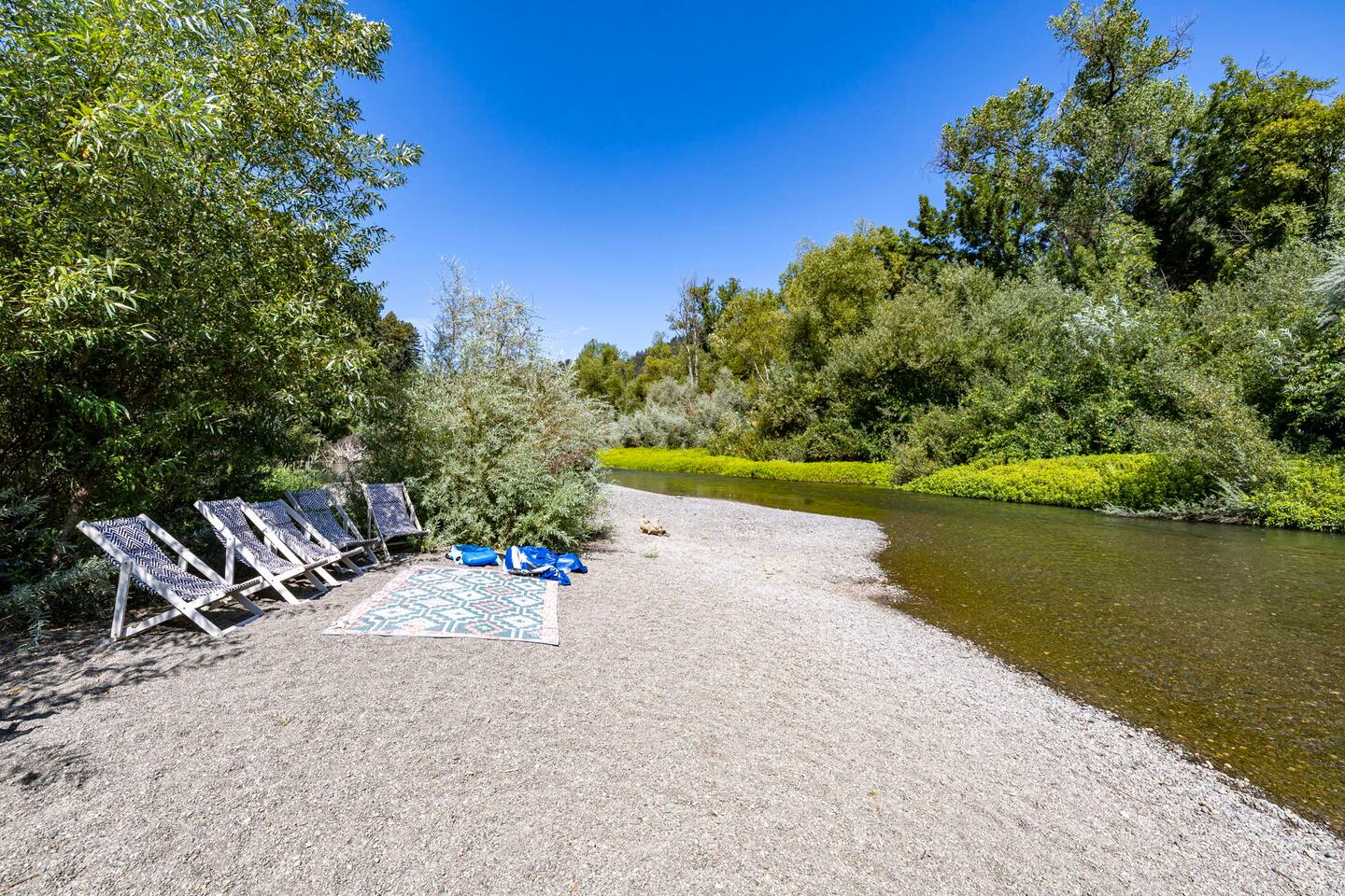 River Rose is a private, riverfront home nestled among the redwoods along the scenic Russian River in beautiful Forestville, California. The property features a spacious back deck with a propane BBQ grill and fire pit, an expansive back yard with numerous fruit trees (help yourselves!), and a private staircase providing seasonal river access, including our own private beach area available for your use in summer months through early fall. The home offers a well-equipped kitchen and dining area, spacious living room with wood-burning stove (wood and kindling supplied), two queen bedrooms, a third bedroom with two twin beds, two full bathrooms (including all essentials), and laundry machines (supplies provided). Whole house climate control, high speed WiFi, and complimentary EV charging are provided for your comfort and convenience. River Rose is conveniently situated just off of River Road, with easy access to shopping and essential services in downtown Forestville (4min), Guerneville (10min), and a short drive to numerous area attractions including picturesque public beaches and parks, Burke's Canoe Trips (2min), the famous Armstrong Redwoods reserve (15min), world class wineries in all directions, an array of excellent dining options, hiking trails, and the breathtaking northern California coastline. See our house guide for a comprehensive list of area recommendations and day trip ideas, or work with our local hospitality manager to plan the perfect itinerary. You'll enjoy complete, exclusive use of the property and its amenities throughout your stay. The property includes free level-2 EV charging and free on-site parking for two vehicles. Additional parking is available along the main road across from the property's entrance. River Rose sits on an acre of land, with a number of mature fruit trees on site. Please help yourselves to apples, lemons, cherries, blackberries, figs, grapefruit, pears and plums when they're in season! PLEASE NOTE: All accessible living spaces are located on the second floor; climbing stairs is a must (but we promise the views are worth it!) Sonoma County License: LIC24-0497 TOT: 4904
